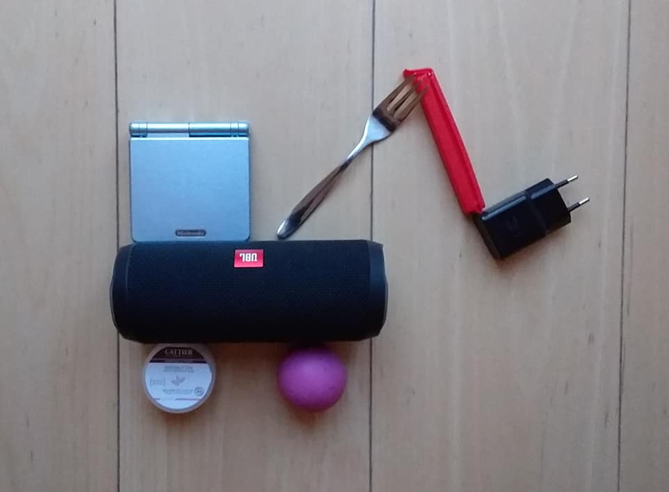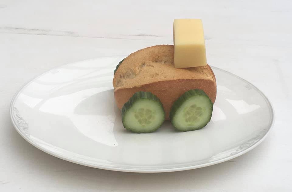 Wir legen Alltagsgegenstände so auf eine Unterlage, dass ein Fahrzeug entsteht.